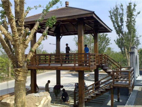 防腐木亭子具有體積不大、用料較少、設計靈活、建筑方便等特點,很適合園林景觀布局的需要。防腐木亭子是在我國園林景觀綠化中運用多的一種建筑形式。無倫是古典園林景觀,還是現代園林景觀中,都可以看到各種各樣豐富多彩的防腐木亭子,屹立于山岡之上;或依附在建筑之旁;或漂浮在水池之畔。以玲瓏美麗、豐富多樣的形象與園林景觀中的其他建筑、山水、綠化等相結合,構成一幅幅生動的畫圖。貴州防腐木亭子成了為園林景觀空間和自然山水增添美色的重要點綴建筑物。防腐木亭子的作用一方面是點綴園林景觀空間、提升環境層次,另一方面是解決人們在旅游休閑中駐足休息,納涼避雨、眺望景色的需要。